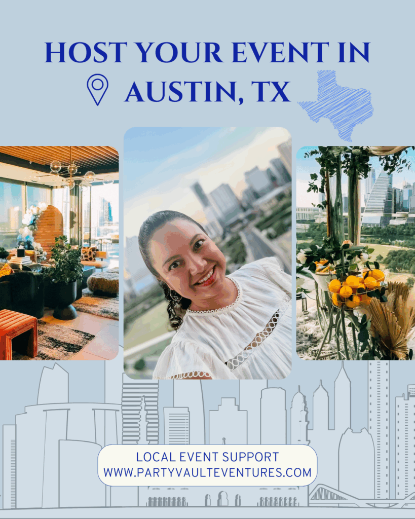 At Party Vault Eventures, we specialize in helping out-of-town clients confidently host unforgettable events in Austin, TX.